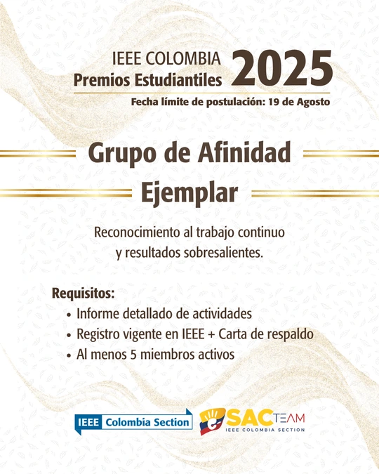Este premio está dirigido a los de afinidad que han logrado fortalecer la identidad de su comunidad temática dentro del ecosistema IEEE. Se valorará una buena gestión, el desarrollo de actividades alineadas con su área de enfoque, la documentación de actividades y la promoción de buenas prácticas que permitan la continuidad y el crecimiento del grupo.