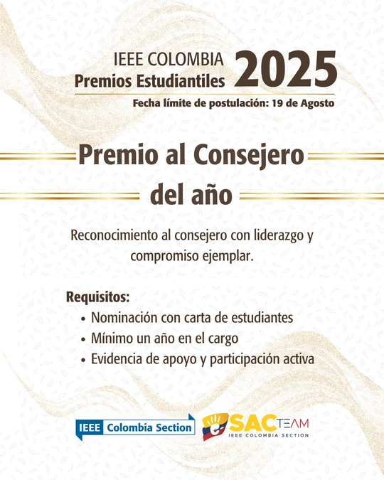 Este galardón busca reconocer el compromiso, la trayectoria y el acompañamiento continuo de aquellos consejeros que, a lo largo del tiempo, han marcado la diferencia en el desarrollo de sus ramas estudiantiles. Se premia su liderazgo, mentoría y contribución al crecimiento de los futuros profesionales IEEE.